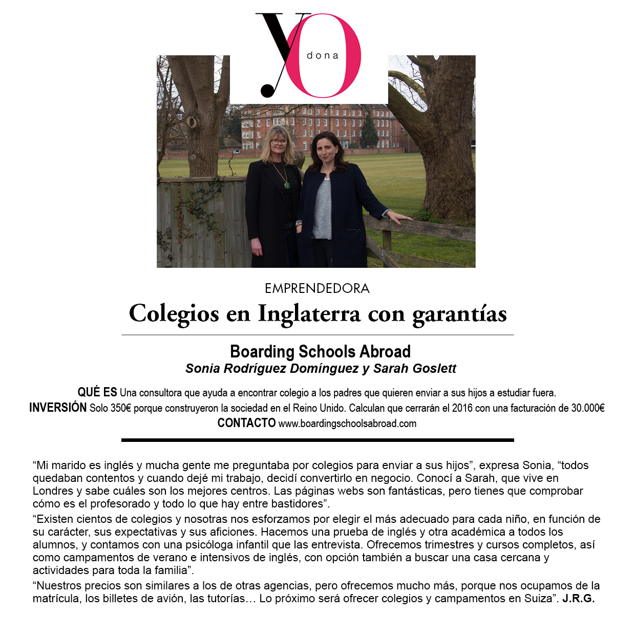 Mi hijo Pablo acaba de volver de Inglaterra, donde ha pasado el último term del curso, en un Prep School. Ha sido una experiencia buenísima para él. El colegio es una maravilla y se adapta perfectamente a lo que buscábamos. Sonia nos ayudó en la selección y puso en marcha todo en tiempo récord. Ha sido un lujo contar con su asesoramiento y apoyo - Natalia Gamero del Castillo.